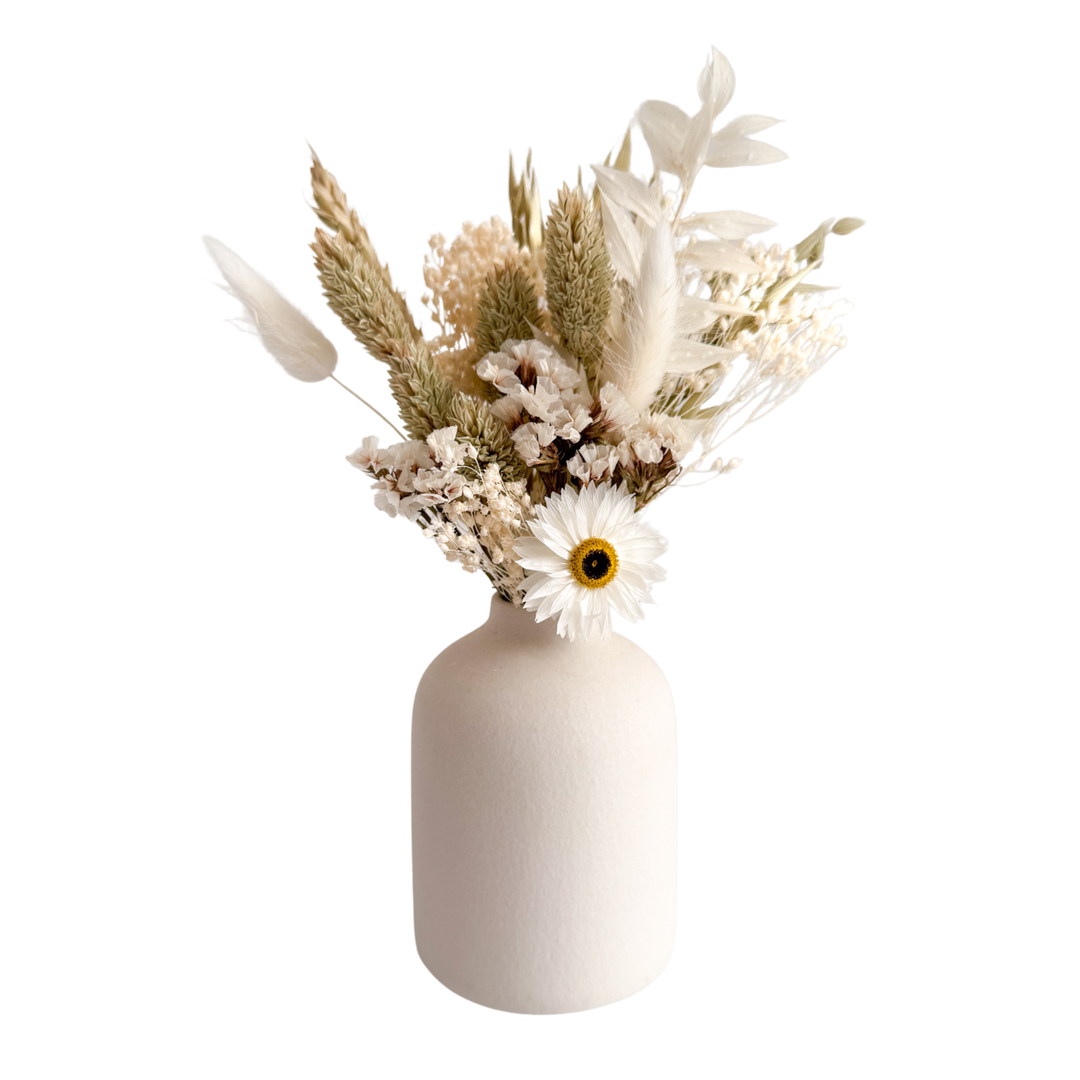 Discover our charming collection of small dried flower bouquets, each paired with a stylish vase for effortless home styling. Perfect as thoughtful gifts or elegant accents for shelves, desks, or side tables, these arrangements add natural beauty that lasts.